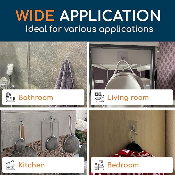 - ✅اشترِ بثقة - هذه الخطافات ذاتية اللصق رائعة لتعليق أدوات المائدة وأدوات الطبخ والمفاتيح والمعطف والقبعة والمناشف وإطارات الصور المعلقة والنباتات الصغيرة والمزيد. جميع خطافات الحائط اللاصقة هذه مصنوعة بشكل جيد، فلا تتردد في الاتصال بنا على مدار 24 ساعة إذا كانت هناك مشكلة مع خطافات الأدوات الخاصة بنا.