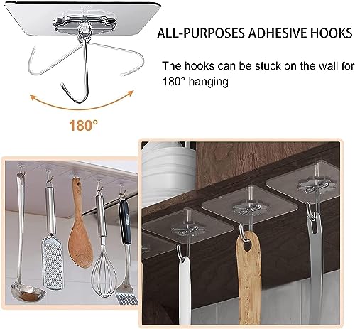 Generic - خطافات حائط للتعليق ذاتية اللصق وشديدة التحمل ومتعددة الاستخدامات، خطافات لاصقة سهلة التطبيق وقابلة للإزالة، خطافات شفافة مقاومة للماء والزيت وقابلة للتدوير 180 درجة (6×6 سم, 30)