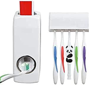 Spaceshoop - موزع معجون أسنان أوتوماتيكي مثبت على الحائط ، مجموعة ملحقات الحمام ، موزع عصارة معجون الأسنان ،