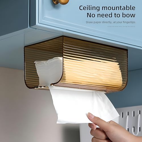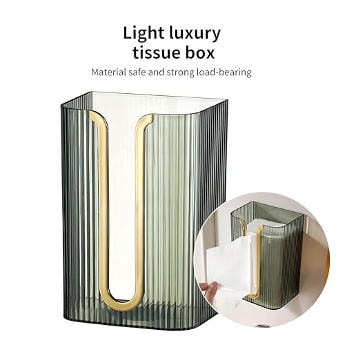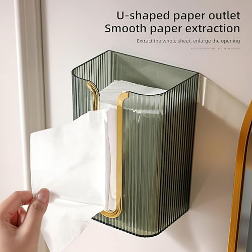 Generic - حامل جداري - موزع صناديق مناديل شفاف أخضر من الأكريليك والبلاستيك بمخرج ورقي منحني ولصق ذاتي وحجم مضغوط 12.5x9.5x19 سم لتسهيل الوصول في أي مكان