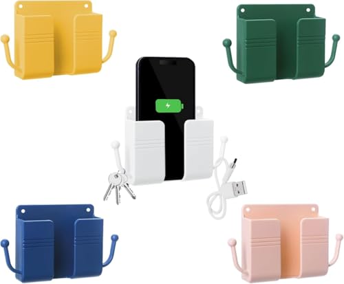 Spaceshoop - حامل الموبايل على الحائط، حامل الموبايل مع فتحة استقبال كابل البيانات. قاعدة شحن للموبايل متعددة الاغراض مع مادة لاصقة. حامل موبايل للاستحمام / الشحن متوافق مع ايفون واندرويد