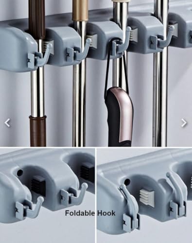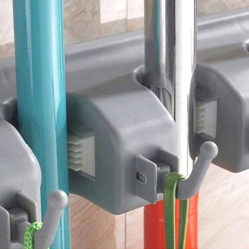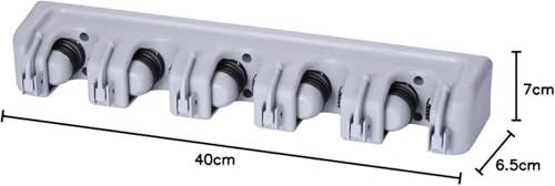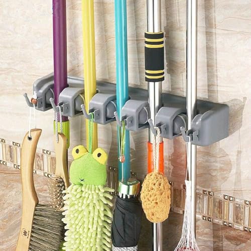 Generic - منظم مقشات ومساحات الموب يثبت على الحائط، 5 فتحات مع خطافات، لون رمادي