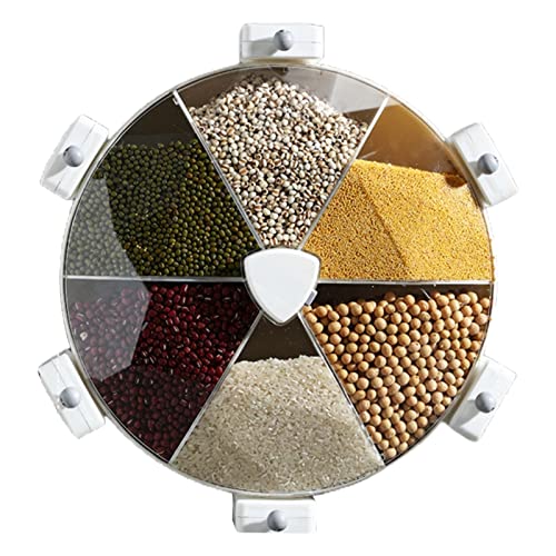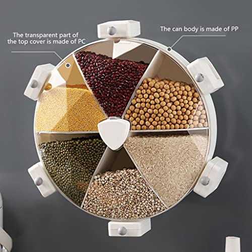 Frotox - موزع حبوب يثبت على الحائط، موزع حبوب 6 في 1، يدور 360 درجة، حاوية توزيع الارز للمطبخ وذرة الصويا، 8.5 لتر