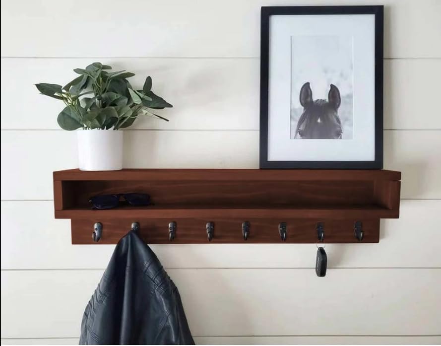 - الخطافات: مجهزة بـ 8 خطافات معدنية متينة لتعليق المعاطف والحقائب والمفاتيح والإكسسوارات