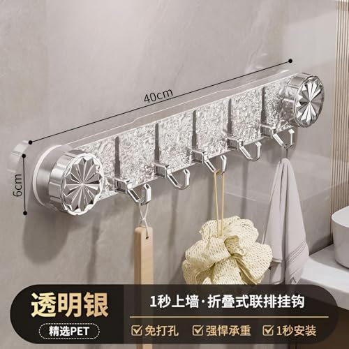 Generic - رف خطاف كريستال يثبت على الحائط - تصميم فضي شفاف 40 سم مع 6 خطافات قوية، تركيب ذاتي اللصق بدون ثقب، مثالي لتنظيم الحمام او المطبخ والديكور العصري.