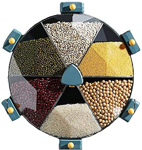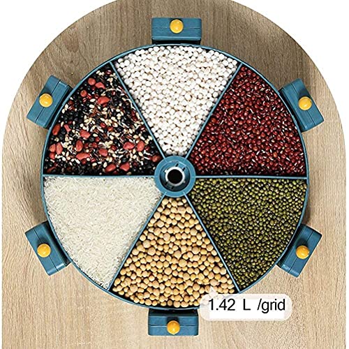 Generic - موزع الحبوب المثبت على الحائط حاوية محكمة الغلق الدورية لتخزين الارز اجزاء متعددة مع 6 مساحات تخزين حبوب توزيع الطعام الجاف لادوات المطبخ ازرق