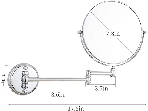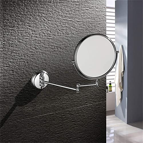 FITGS - Wall Mounted Makeup Mirror, 8 Inch Double-Sided Shaving Mirror With Magnification, 360° Rotatable Extendable Bathroom Vanity Mirrors,Silver,5X ( Color : Brass , Size : 7X )