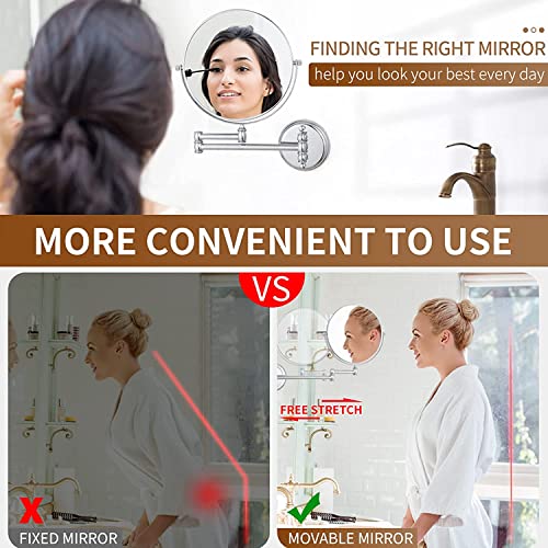 - ★The wall mount mirror has a stylish design that has a folding function. The wall-mounted mirror extends more than 12 inches (30 cm) from the wall and can be moved easily, while still being firm enough to hold the angles, and can be folded against the side of the wall.