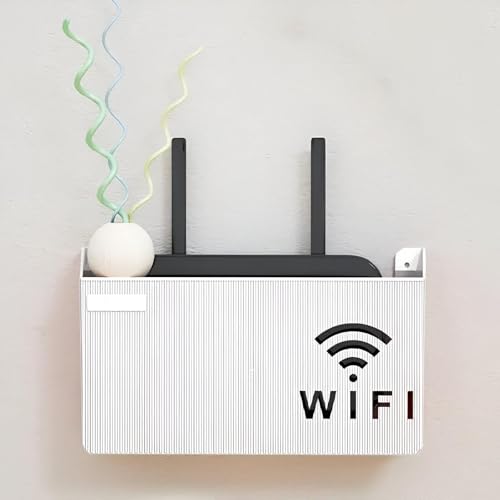 Generic - منظم يثبت على الحائط - حل تخزين الراوتر بدون ثقب، يخفي الكيبلات والاجهزة، مثالي للراوتر اللاسلكي وصناديق الوسائط، يخلق مظهرًا نظيفًا وخاليًا من الفوضى (ابيض)