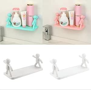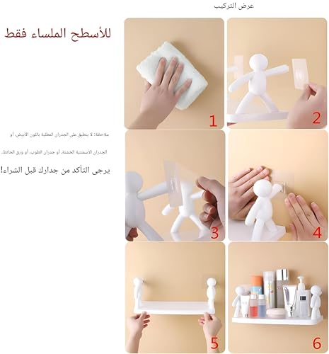 Generic - منظم يثبت على الحائط، رف حمام بلاستيك متين مع ظهر ذاتي اللصق لتركيب سريع وسهل (2 قطعة)