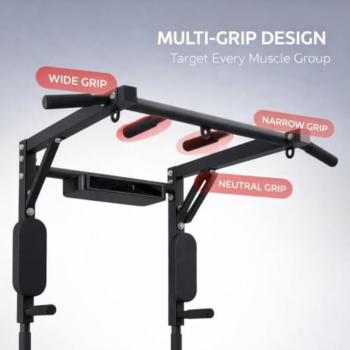 - تصميم متعدد الوظائف 4 في 1: تتضمن قضيب سحب ومقابض غمس وقضيب رفع الساق ومقابض دفع لأعلى - مثالية لتمارين الجزء العلوي من الجسم وتمرين القوة.