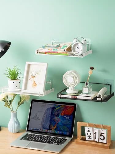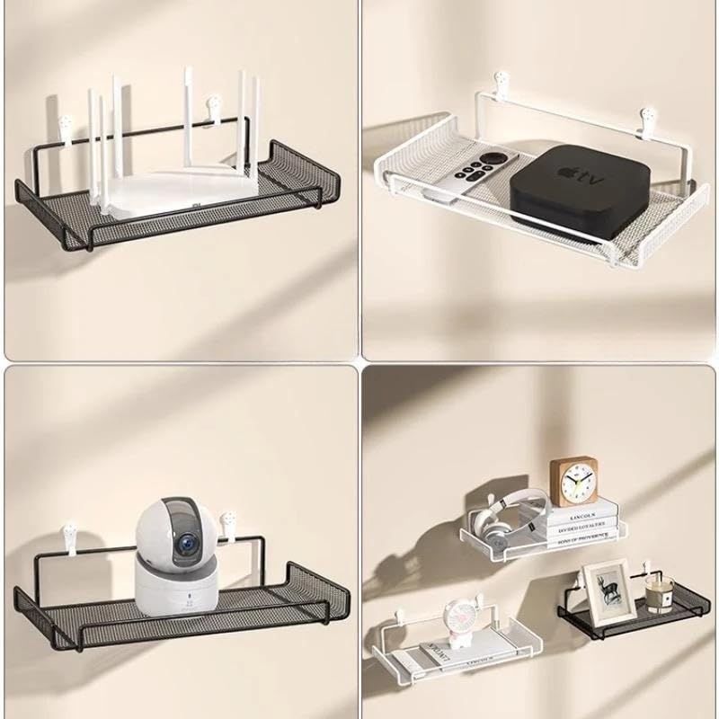 Generic - حامل رف يثبت على الحائط متعدد الوظائف صندوق تخزين علوي لشاشة التلفزيون منظم مكتب متفرقات منزلي جديد معدن أسود وأبيض