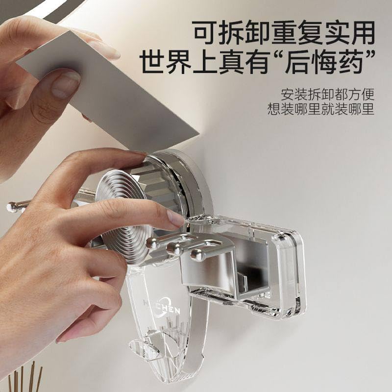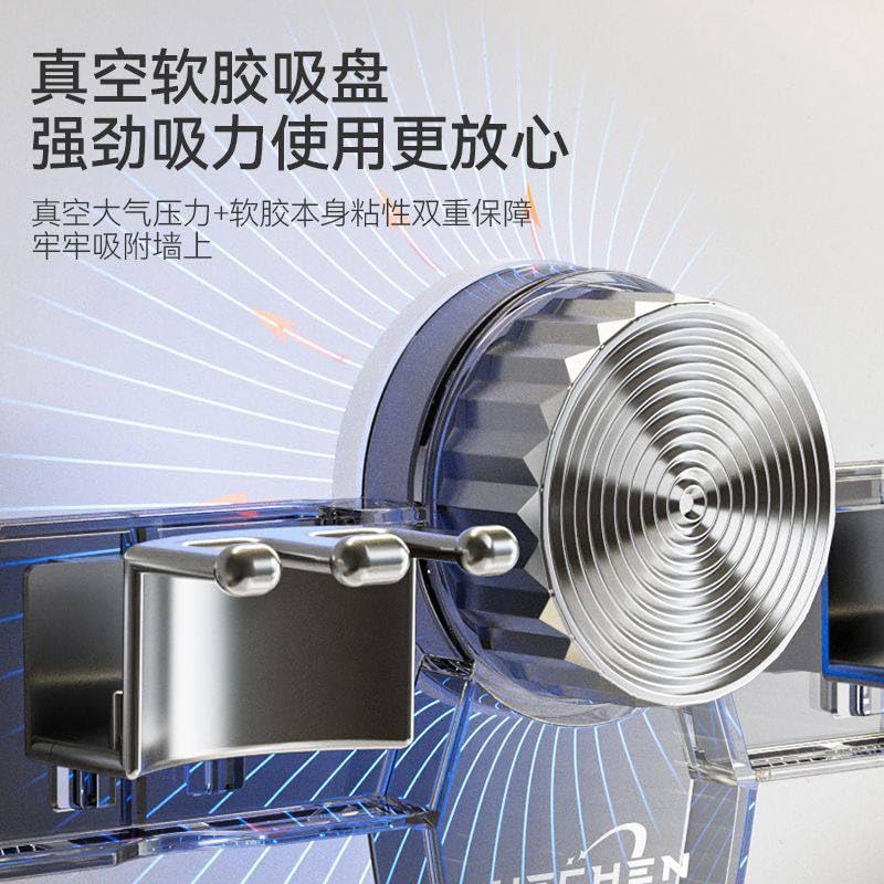 • تثبيت سهل بدون أدوات: يتميز بنظام تثبيت على الحائط لا يتطلب حفر أو أدوات، مما يحافظ على جدرانك من التلف