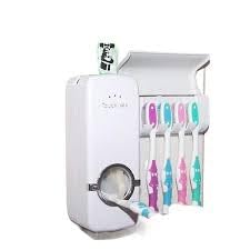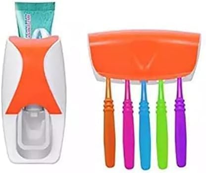 Generic - حامل فرشاة الاسنان ومعجون الاسنان يثبت على الحائط - يحمل 5 فرش، توزيع تلقائي بضغطة واحدة، منظم حمام موفر للمساحة للاطفال والعائلة والمنزل