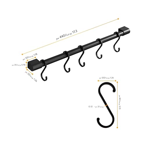- ✔ 【أبعاد المنتج】: مقاس هذا الحامل 44 × 3.2 × 2.5 سم مع 5 خطافات على شكل حرف S. يمكن لهذا الرف المثبت على الحائط حمل 20 كجم كحد أقصى، قوي بما يكفي لحمل الأكواب وطقم التوزيع ومساكة الطعام وغيرها من الأشياء.