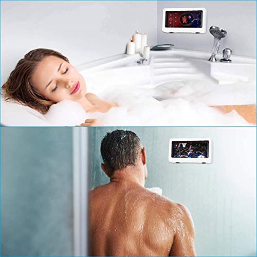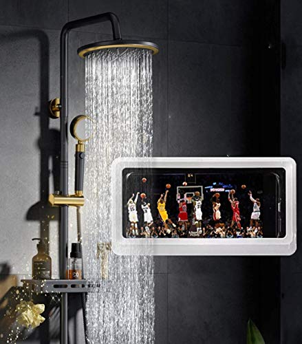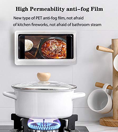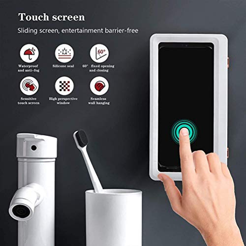 Spaceshoop - حامل جدار دش الموبايل للماء الحمام، حامل جدار الموبايل مقاوم للماء، حامل الموبايل لمرآة الحمام، HD مكافحة الضباب صندوق الموبايل المحمول للحمام، المرحاض، المطبخ (أبيض)