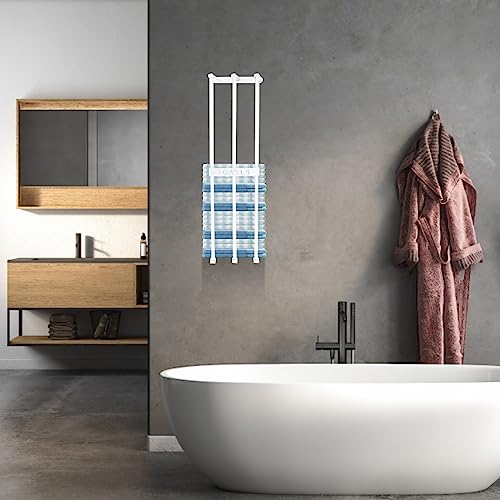 - 2.【زيادة المساحة】 استغل المساحات غير المستخدمة على الحائط للحصول على تخزين عمودي للفوط؛ أبعاد حامل الفوط الملفوفة 75 × 19 سم، مع بُعد 14.7 سم عن الحائط. يمكن لحامل الفوط المثبت على الحائط أن يستوعب ما يصل إلى 6–7 فوط بحجم عادي ملفوفة. مثالي للمساحات الصغيرة.