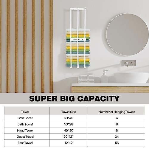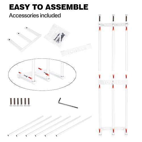 - 4.【استخدام واسع】 رف الفوط الجداري مثالي لتخزين الفوط الملفوفة بجميع أنواعها، مثل فوط الحمام، وفوط اليد وفوط الوجه وفوط الشاطئ والمسبح، واليوجا، وفوط الجيم وغيرها. منظم الحمام هذا مناسب للحمام الرئيسي وحمام الضيوف وسيارة ار في والمخيم والمنزل المتنقل ومقطورة السفر والفندق والمنتجعات الصحية والساونا والصالون والغسيل. هدية لطيفة لإعادة تشكيل الحمام.