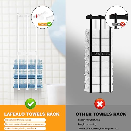 LAFEALO - رف حائط لفوط الحمام الملفوفة، 3 رفوف مطورة جديدة للحمام، منظم لفوط الحمام، حامل فوط حمام معدني للفوط الكبيرة المطوية