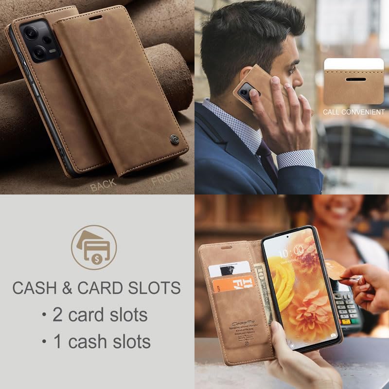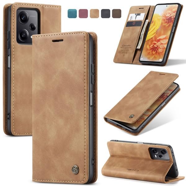 Generic - حافظة حماية قابلة للطي متوافقة مع شاومي ريدمي نوت 12 برو بلس 5G، جلد صناعي، قفل مغناطيسي، مسند، بني