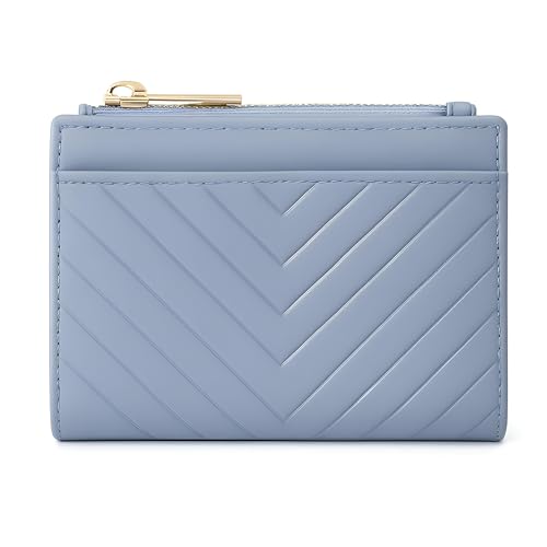 Generic - محفظة - محفظة صغيرة ثنائية الطي مع بطانة شيفرون، نافذة لبطاقة الهوية، 3 فتحات للبطاقات، جيب بسحاب، مقاس مثالي 3.75 × 4.51 انش للاستخدام اليومي (رمادي)