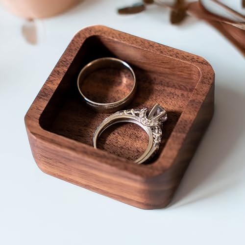 Timber Box Design - صينية خواتم من خشب عين الجمل| حامل خواتم مربع صغير من الخشب الصلب | صندوق مجوهرات