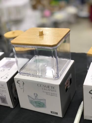 Spaceshoop - منظم عيدان أذن أكريليك بغطاء خشبي من واندانا