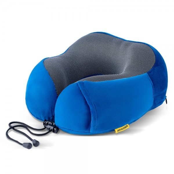 Generic - وسادة رقبة للسفر من رغوة الذاكرة من واندر مع حقيبة حمل، ازرق ورمادي، رباط قابل للتعديل