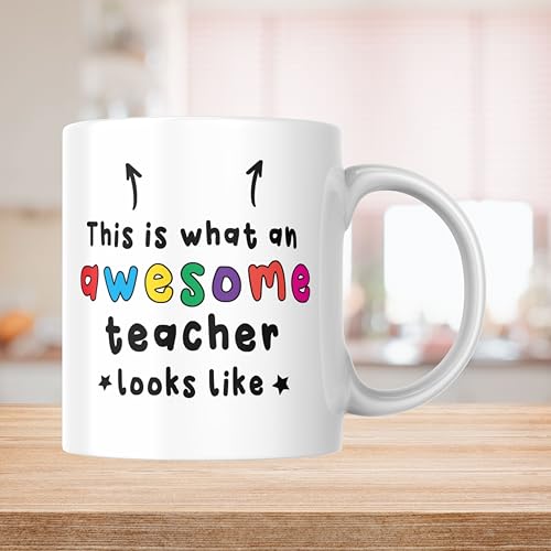 Wanky Candles - هدية للمعلم كوب رائع عيد الميلاد لنهاية الفصل الدراسي مج للكريسماس بكتابة «إنه معلم رائع» موديل KMUG34 سيراميك أبيض