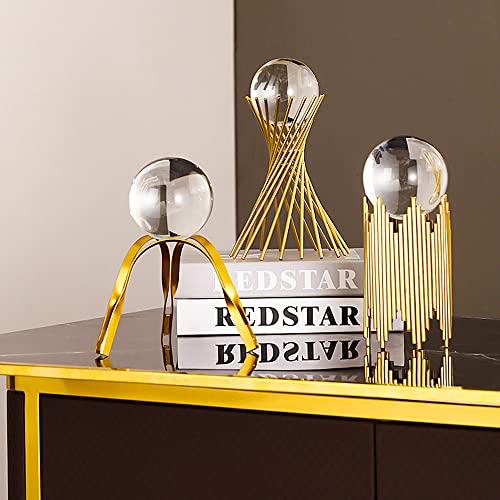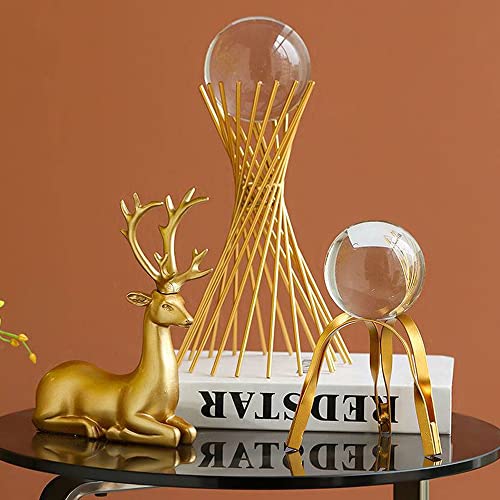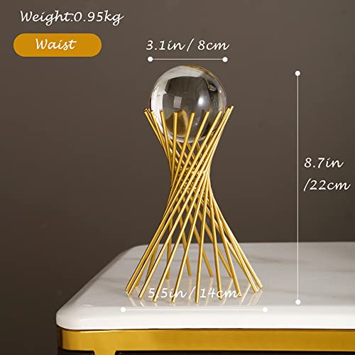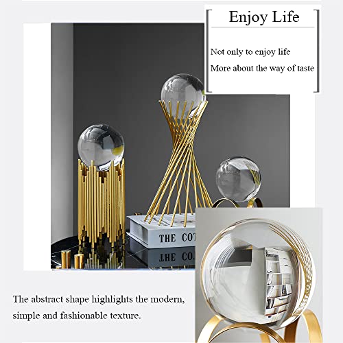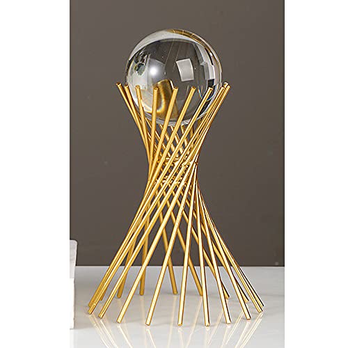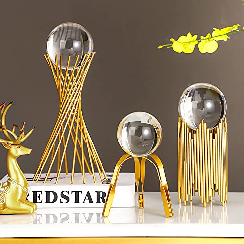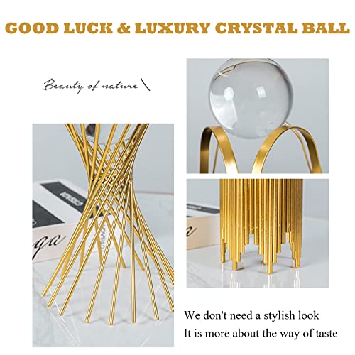 WANLIAN - كرة كريستال شفافة مع حامل معدني مذهب، كرة زينة معدنية فاخرة خفيفة الوزن مناسبة كهدية، بتصميم فني تجريدي، مناسبة كاكسسوارات تصوير فوتوجرافي وديكور حامل تلفزيون وديكور الزفاف وديكور الحفلات، ويست