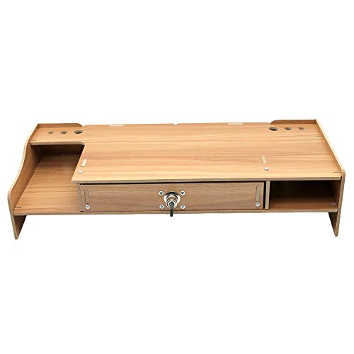 Wanlian - حامل رافع للشاشة مع درج - رف منظم للمكتب بمساحة لتخزين الكيبورد، مناسب للاب توب والشاشة والكمبيوتر المكتبي مع حامل للموبايل والتابلت (خشب جوز)