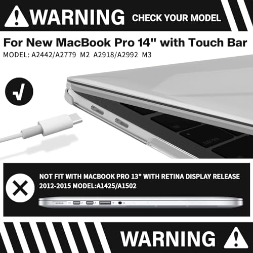 - ✔️ 【التوافق】 متوافق مع ماك بوك برو 14 بوصة (الموديل: A2442/A2779 M2/A2918/A2992) فقط. يرجى التحقق من رقم الموديل "AXXXX" على ظهر جهاز ماك بوك الخاص بك قبل الشراء. غير متوافق مع موديلات ماك بوك الأخرى.