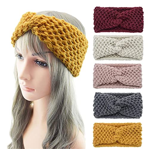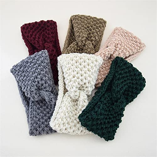 WAQAM - شريط رأس شتوي دافئ محبوك بالكروشيه للنساء من واكام، بتصميم عريض متقاطع، كرباط شعر أو تيربون، إكسسوارات الشعر (اللون: F، المقاس: 11 × 21 سم)