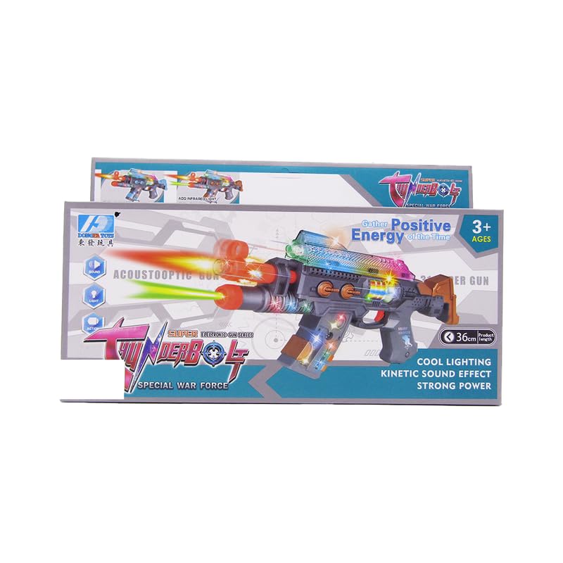 • البطارية المطلوبة (غير متضمنة): تتطلب البندقية بطاريات (غير متضمنة) لتشغيل ميزات الصوت والضوء الرائعة، مما يضمن ساعات من اللعب المثير.