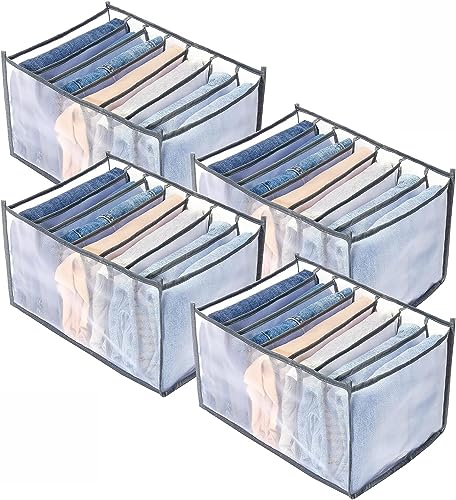 Fohome - منظم ملابس لترتيب الدولاب والأدراج والتخزين شبكي بفواصل لتنظيم البناطيل الجينز الرفيعة والبنطلونات والتيشرتات والجيب 4 قطع - 7 أقسام من فوهوم