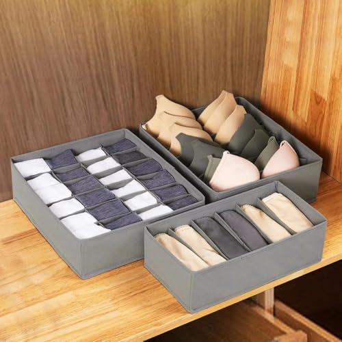 Generic - منظم أدراج وخزانة الملابس، مقسم للملابس الداخلية والأوشحة والجوارب، قابل للغسل وقابل للطي، قماش غير منسوج، صناديق تخزين رمادية لتنظيم فعال