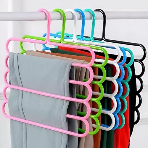 Generic - شماعات ذكية من 5 طبقات للسراويل من وردروب سوليوشنز، مصممة لكفاءة المساحة وسهولة الوصول (الوان مختلفة) (6 قطع)