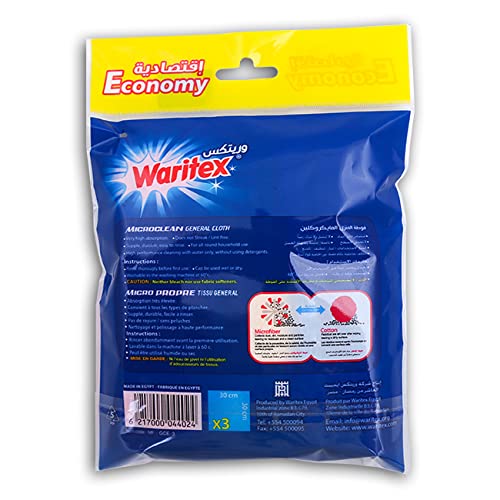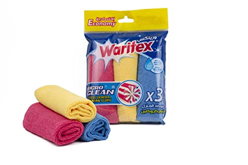 WARITEX - قماشة تنظيف من واريتكس مصنوعة من البوليستر والبولي أميد، متعددة الألوان، مقاس قياسي، طقم 3 قطع، متينة
