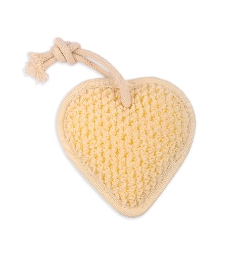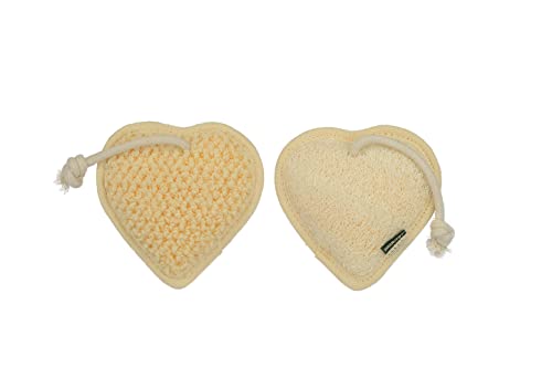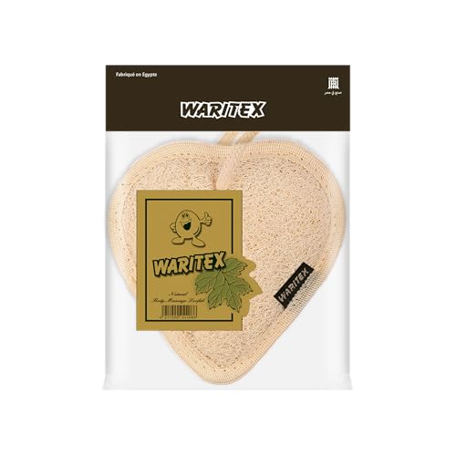 WARITEX - ليف استحمام طبيعي من Waritex – شكل قلب – مزدوج – وجه لتقشير لطيف وتنشيط البشرة – والوجه الآخر ناعم للمساج والاسترخاء
