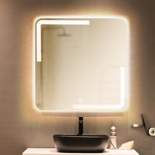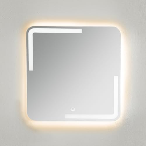 Generic - مراة حائط باضاءة دافئة تعمل باللمس مقاس 80 × 80 سم - مراة حائط فانيتي باضاءة LED مع سطوع قابل للتعديل للحمام وغرفة النوم وطاولة الزينة وديكور المنزل - مراة عصرية مضيئة مضادة للضباب بدون اطار