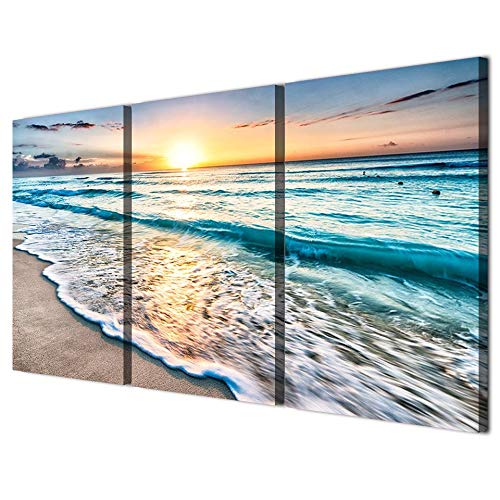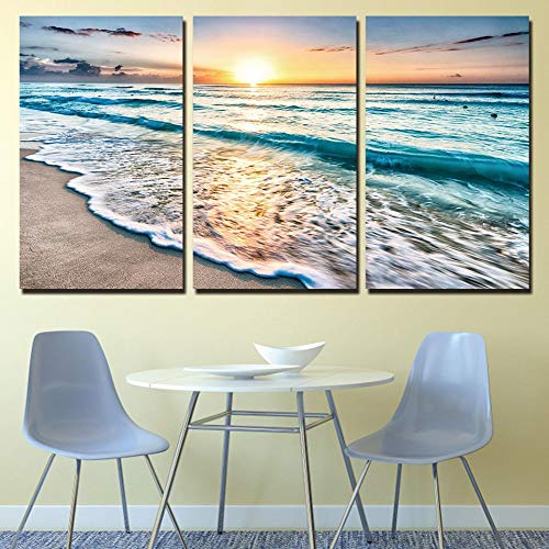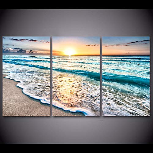 Other - لوحة فنية جدارية قماشية بتصميم مياه البحر الاستوائية الدافئة عند غروب الشمس، مجموعة من 3 قطع