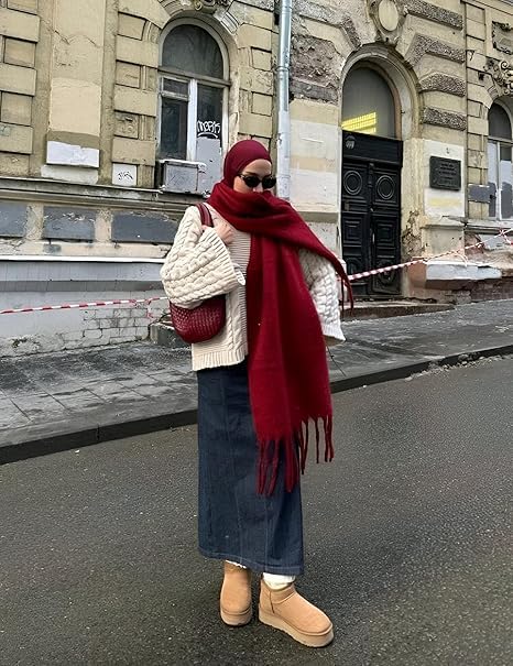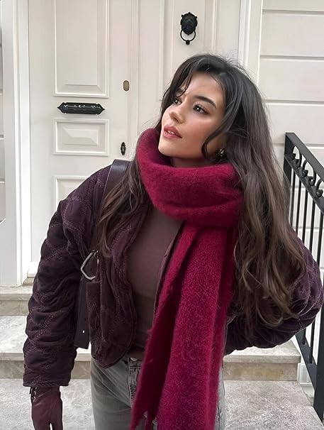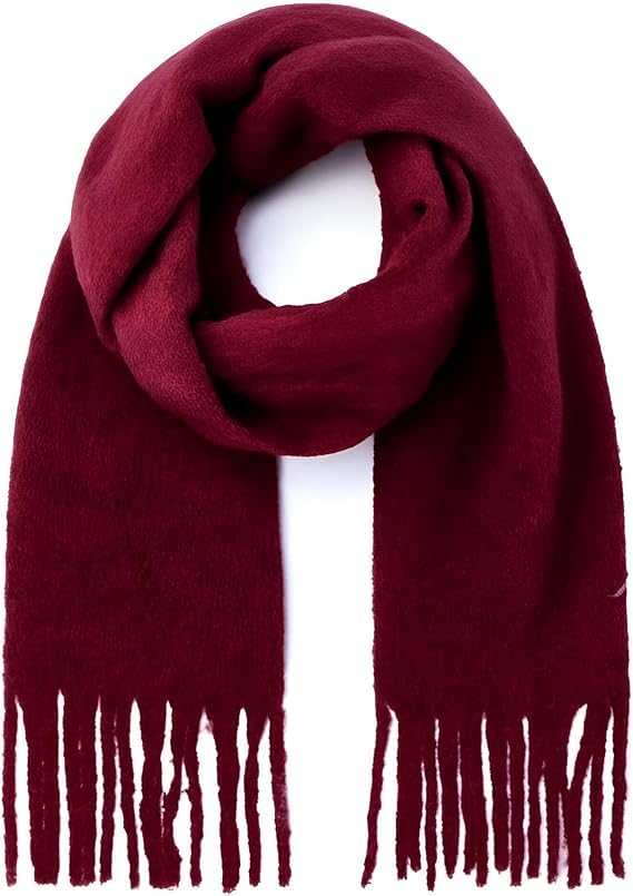 GENERIC - شال دافئ - شال محبوك بشراشيب للنساء، اكسسوار شتوي طويل لمظهر مريح (بورغندي)