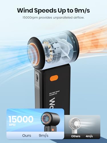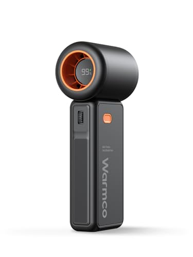Warmco - مروحة يد نقالة قوية من نوع توربو بسعة 5000 مللي امبير في الساعة، دوران سريع 13000 دورة في الدقيقة، ويمكن شحنها بواسطة USB للرحلات والأماكن المفتوحة من وارمكو، أسود