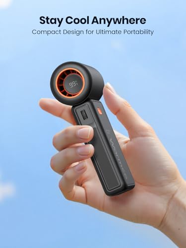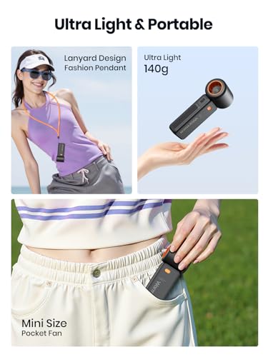 - [حجم مدمج - سهل النقل ومصمم لعدم الفقدان] بأبعاد 12.9 سم × 5.3 سم × 4 سم وكتلة 170 جم فقط، تعد هذا المروحة خفيفة للغاية ويسهل حملها. مع رباط الأمان المضاد للفقد، يصبح بالإمكان إيداعه ببساطة في الجيوب أو الشنط أو تعليقه حول الرقبة. يوافق متطلبات الرحالة والمولعين بالهواء الطلق والعاملين في المكاتب وخبراء التجميل وأي شخص يبتغي أسلوب تبريد عصري ومفيد.