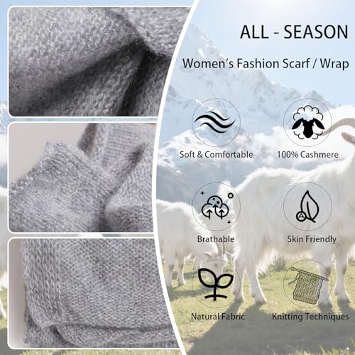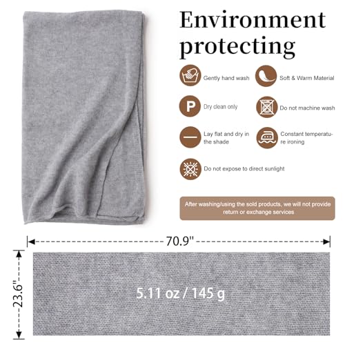 WASALUYA - سكارف كشمير محبوك بنسبة 100% من واسالويا - وشاح سفر ناعم للغاية للنساء، شال كبير خفيف الوزن، 70.9 × 23.6 انش