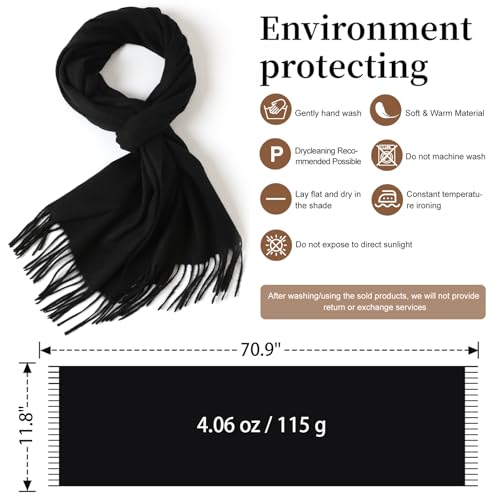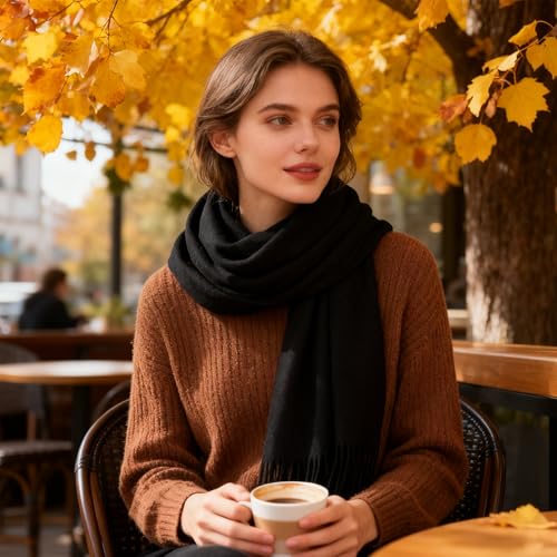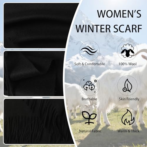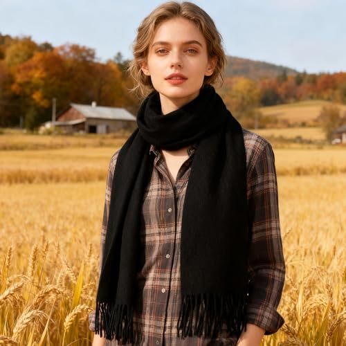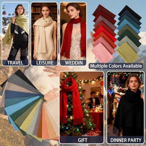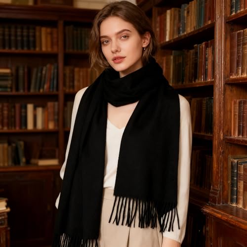 WASALUYA - سكارف للنساء من الصوف الخالص، سكارف شتوي طويل دافئ مزين بشراشيب، شال أنيق لحفلات الزفاف والسهرات مناسب لتقديمه كهدية من واسالويا