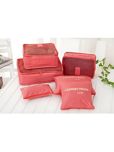 Generic - Wash Bag - Included in seven piece travel cube set with cosmetic organizer, made of water resistant watermelon red polyester for home trips