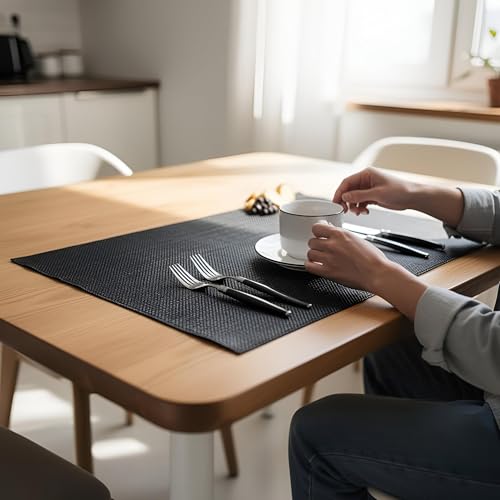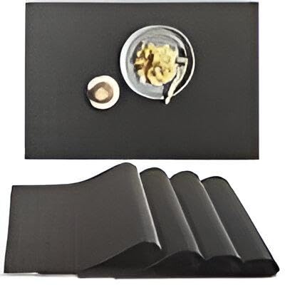 - تحتوي كل مجموعة على أربعة مفارش بمقاس دقيق (18 × 12 انش / 30 × 45 سم)، مصممة لتناسب طاولات الطعام القياسية وتوفر حماية ثابتة ضد الحرارة والانسكابات أثناء الوجبات.