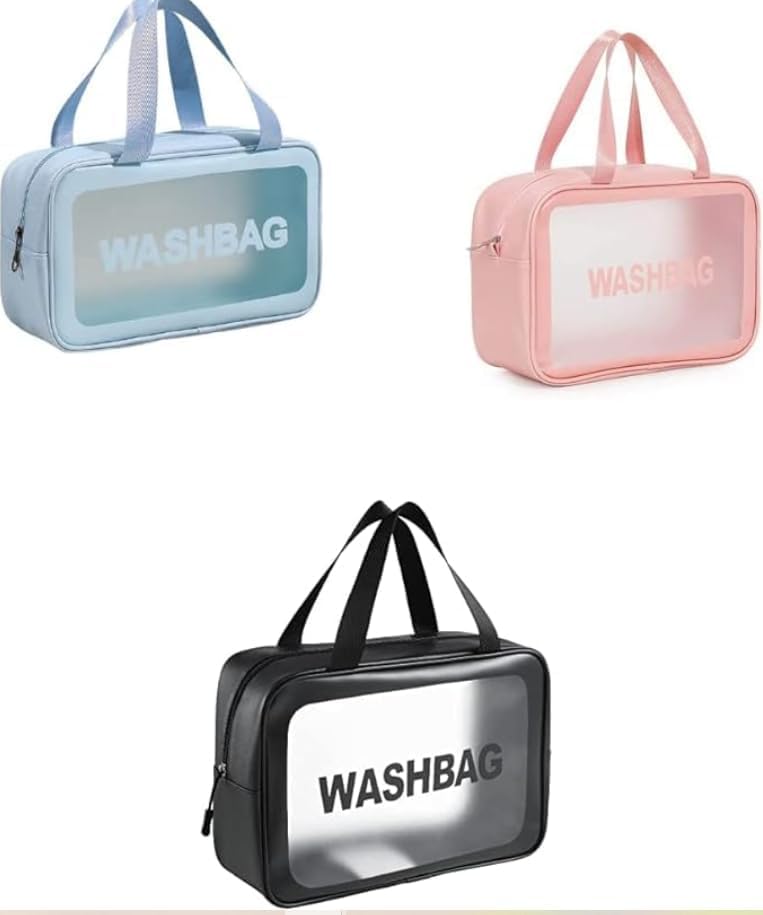 - مجموعة كاملة: تتضمن ثلاث حقائب شفافة لأدوات الزينة بأحجام مختلفة مع مقابض حمل مريحة لتنظيم السفر متعدد الاستخدامات