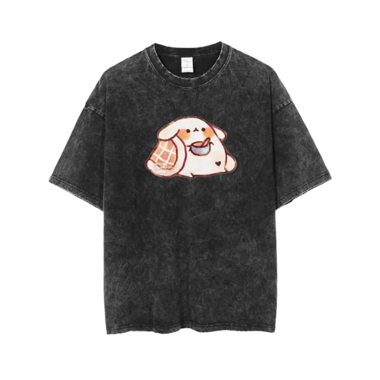 Generic - تيشرت رمادي باهت بتصميم ارنب لطيف كاواي مقاس كبير 23